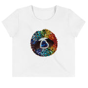 Looking for you next wardrobe favorite? Well, look no further because this crop tee is printed and sewn to fit you just right. To top that off, the original all-over design is definitely worth showing off, so don't hesitate to own one of these tees - they're meant to be adored.